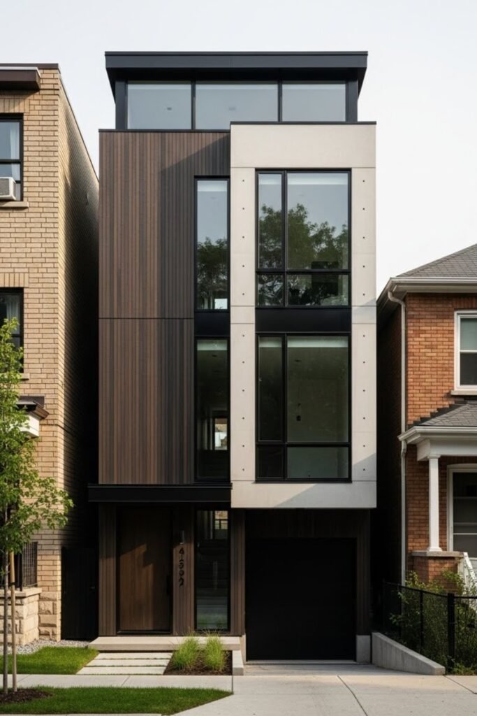 This plan is built for narrow lots where width is limited but depth is available. Rooms are arranged efficiently to avoid wasted hallways.