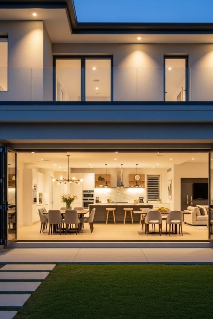 The kitchen sits at the heart of the home, flowing directly into dining and living areas. This layout supports modern lifestyles where cooking and socializing happen together.