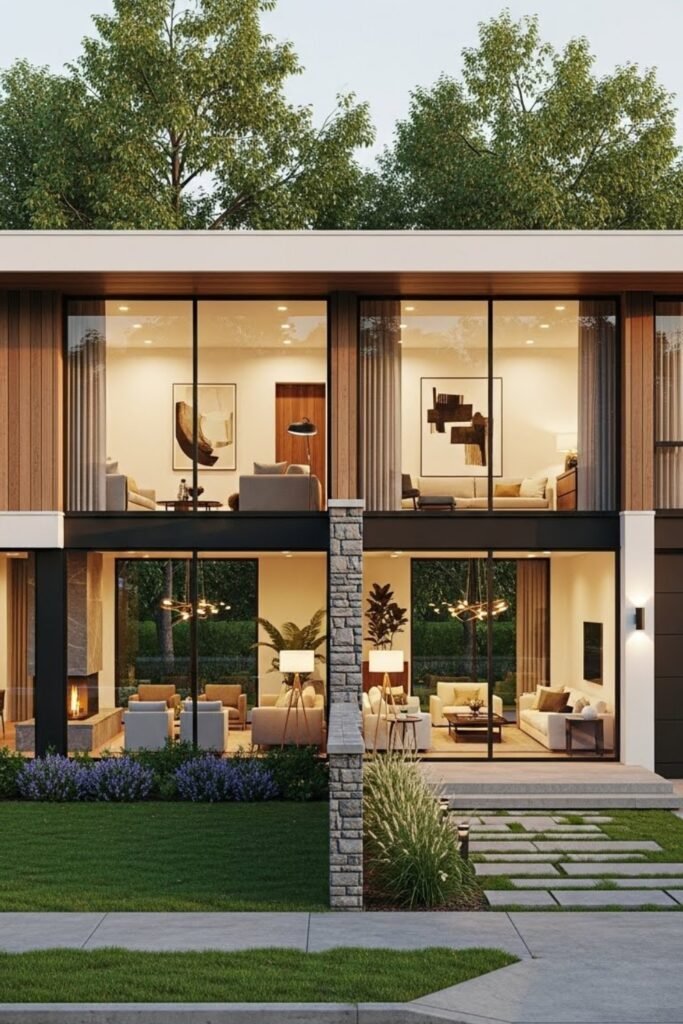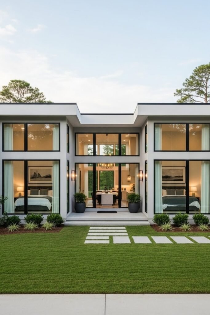 A modern layout with fewer walls and simple circulation paths makes the home feel open and airy.