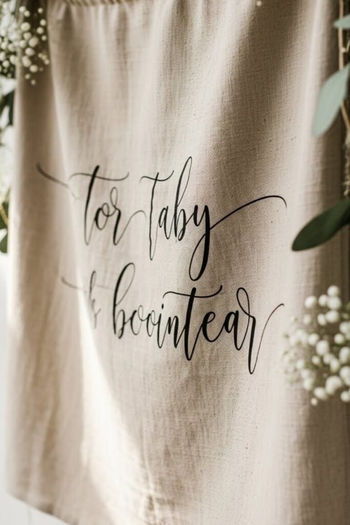 A linen banner with flowing script brings a soft, elevated feel to the baby shower. The natural fabric adds texture, while handwritten-style lettering keeps it warm and personal.
