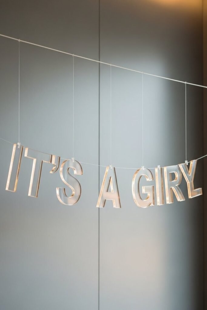 Use clear or frosted acrylic letters strung together or mounted on a simple base. The transparency keeps the setup clean while letting other decor shine through.