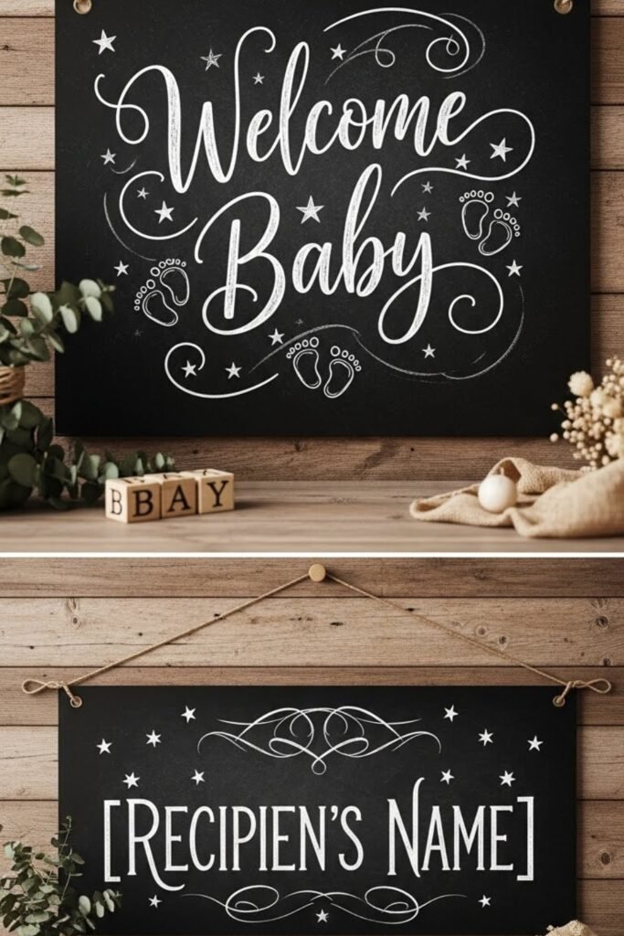 Create a banner using a chalkboard-style surface with a handwritten message or sweet quote. White lettering on a dark background adds contrast and draws attention without loud colors.