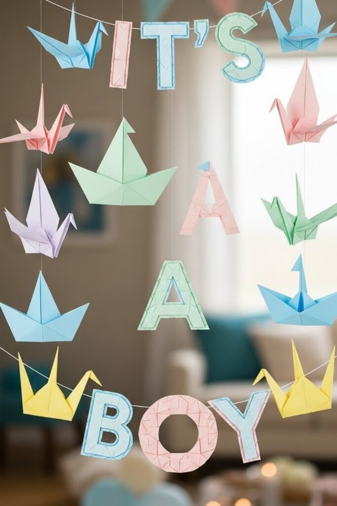 The handmade detail adds charm without feeling childish. This works well for indoor baby showers and looks especially nice when hung in layers or staggered heights