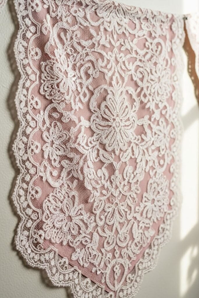 Design the banner with a lace layer placed over a solid backing. The soft pattern adds elegance and texture while keeping the message clear.