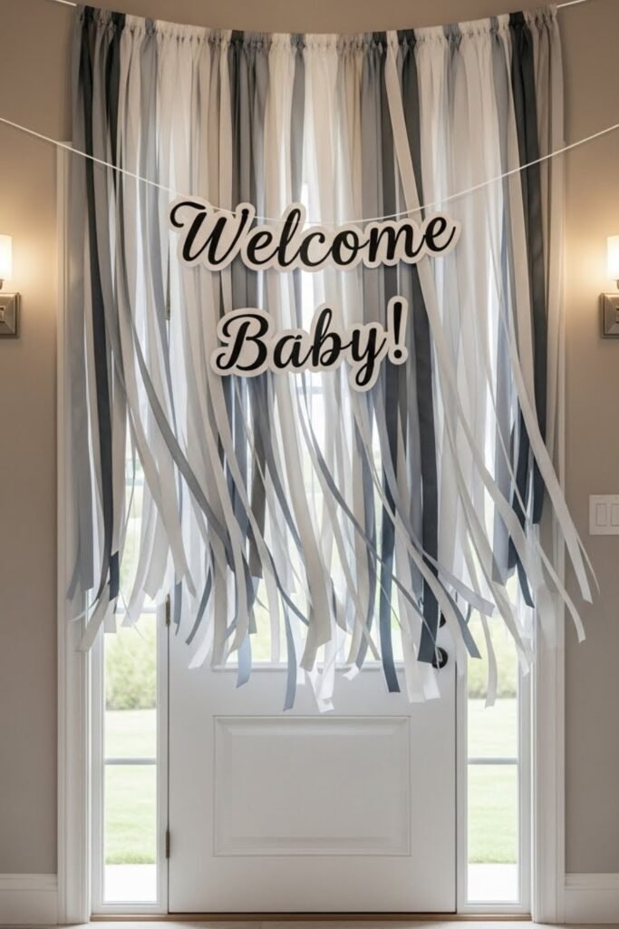 This idea works especially well for doorways or backdrop walls. The gentle flow of ribbons makes the banner feel lively and photo-friendly.