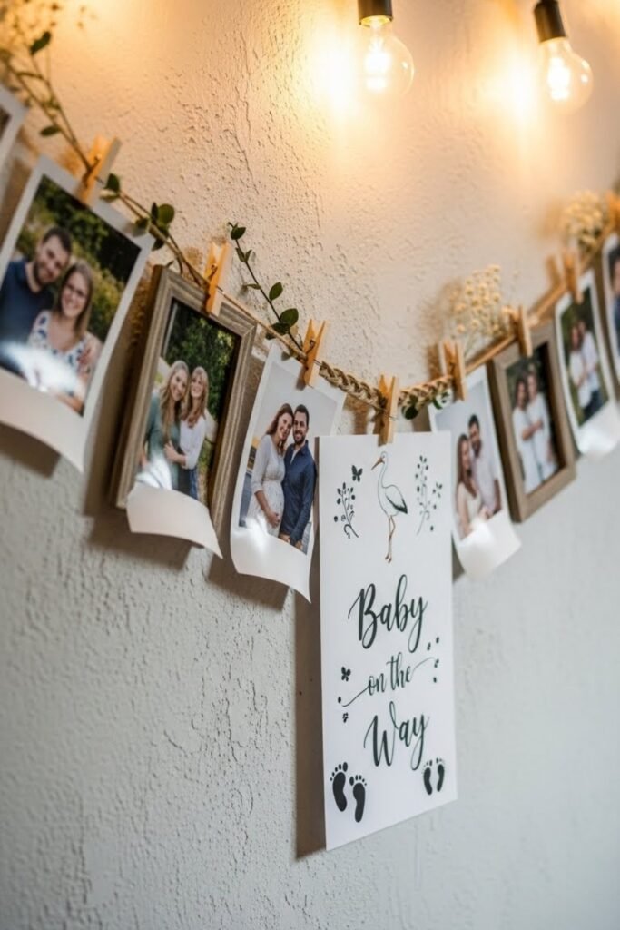 Turn the banner into a visual timeline using photos from the parents’ journey to the baby shower.