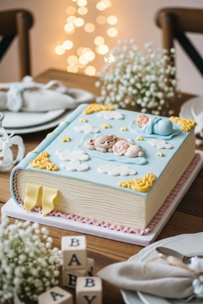 You can feature a bedtime theme, clouds, or tiny animals to keep it baby-friendly. It’s perfect for parents who love books and want a meaningful, cozy touch at the shower.
