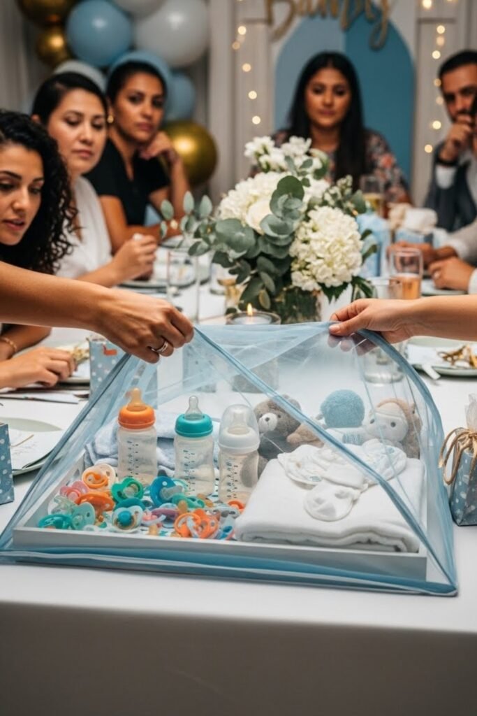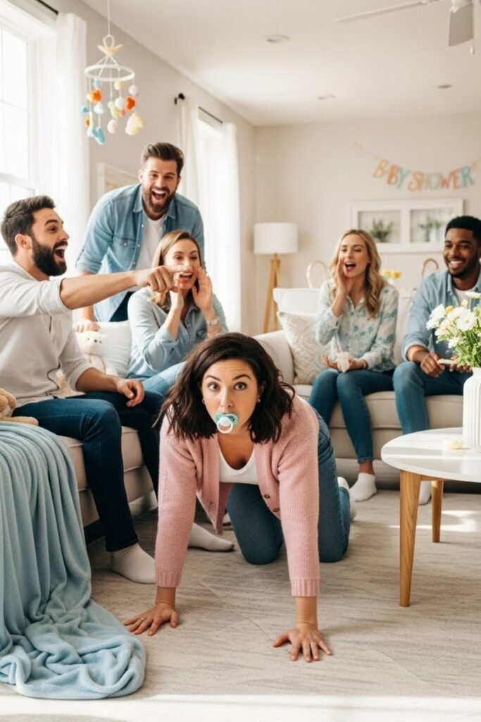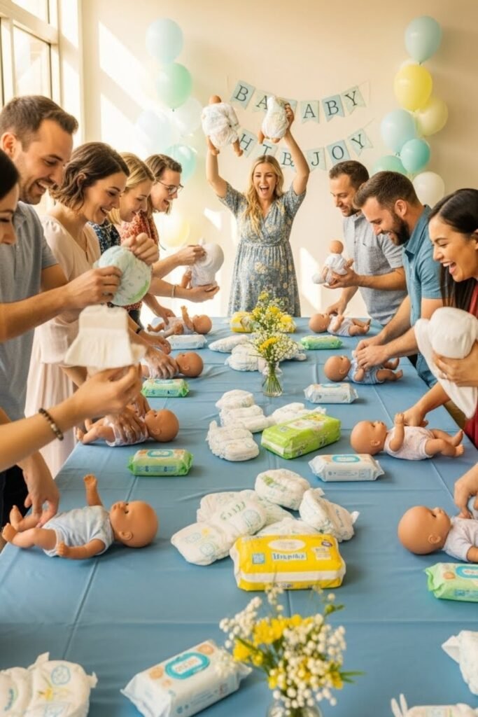 Write baby-related actions, items, or situations on cards. Guests take turns acting them out without speaking while others guess.