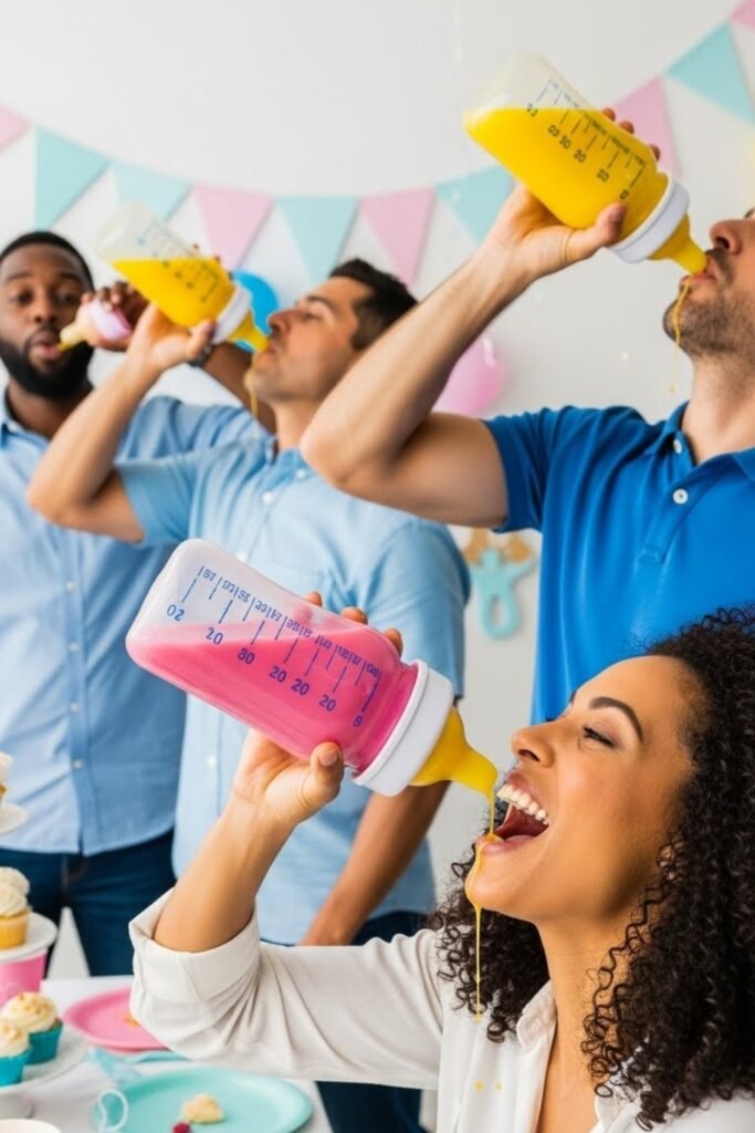 Fill baby bottles with juice or water and give one to each player. On “go,” guests race to finish their bottle first.
