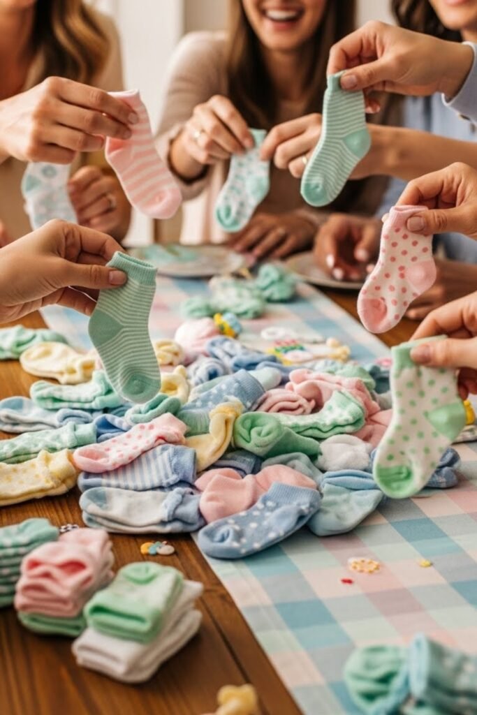 Mix several pairs of baby socks in a basket. Set a timer and challenge guests to match as many pairs as possible before time runs out.