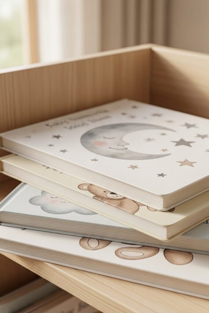 A small collection of baby storybooks helps parents start reading routines early. Board books with simple text and illustrations work best for newborns and infants.