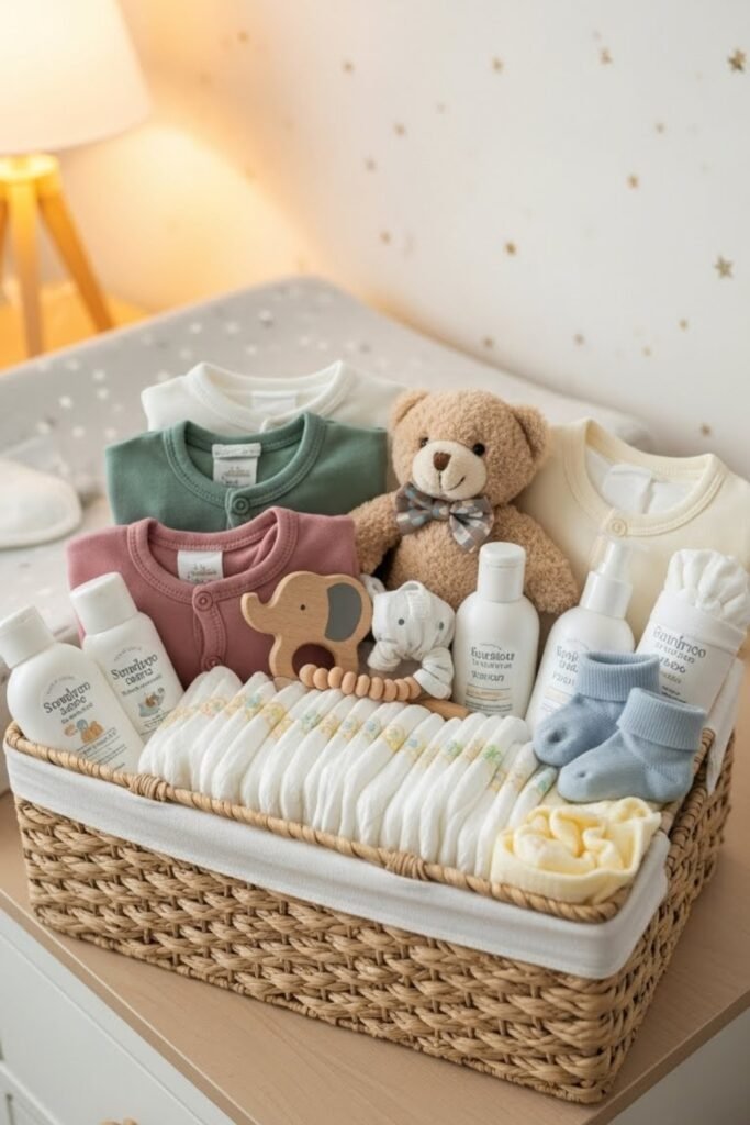 A baby welcome basket combines small essentials like diapers, clothes, toys, and care items into one thoughtful gift. It feels complete and celebratory, making it ideal for baby showers.