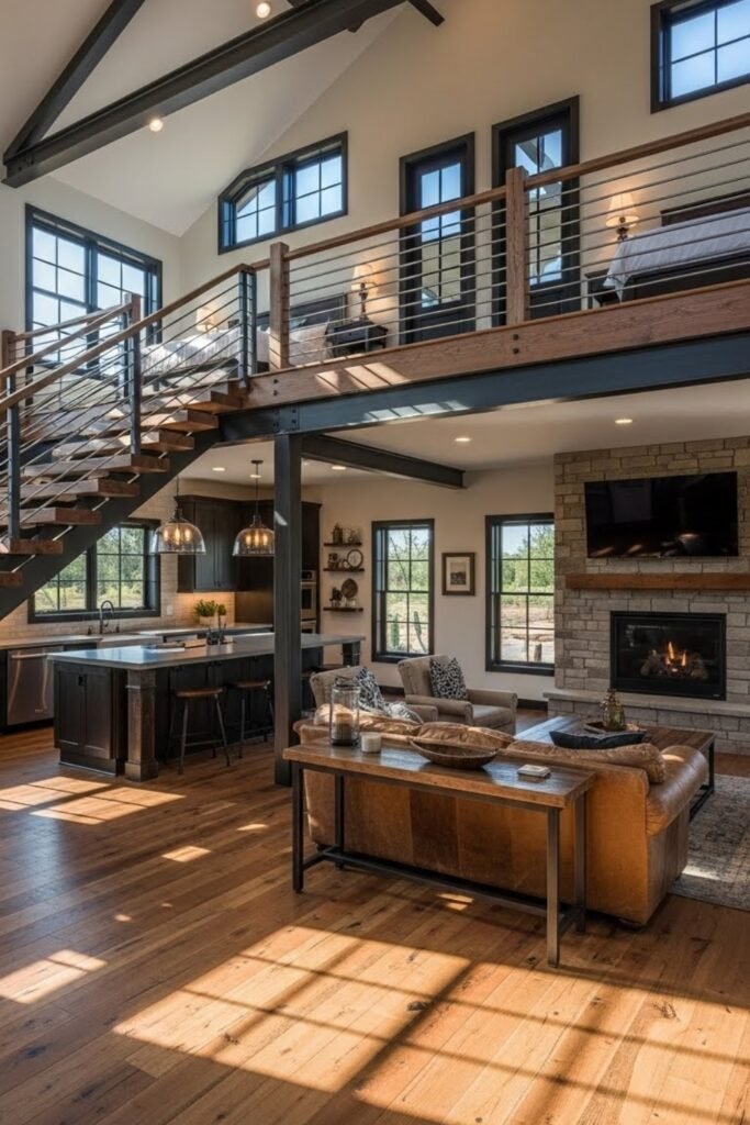 The loft can be used as bedrooms, a home office, or a flexible bonus area. It’s a smart option for smaller barndominiums or weekend homes.