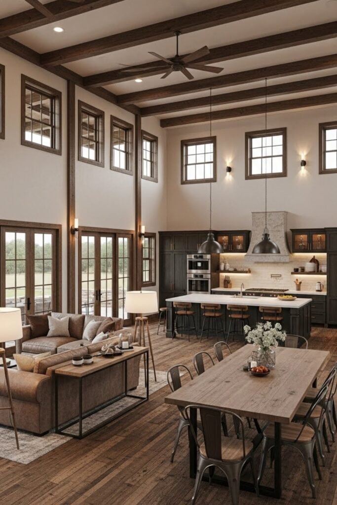 It keeps a familiar home feel while taking advantage of the open structure and durability of a barndominium build