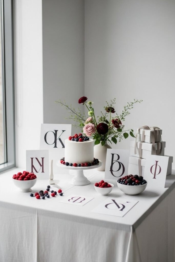 This idea keeps the theme modern and stylish while still staying sweet. It’s ideal for hosts who want a polished look that photographs well.