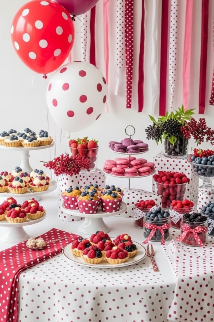 Add charm with a polka-dot pattern paired with berry tones. Use dotted tablecloths, napkins, or backdrops while keeping the color palette soft.