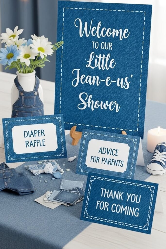 This gives guests a fun activity while also creating shareable memories tied directly to the Blue Jean Baby Shower look.
