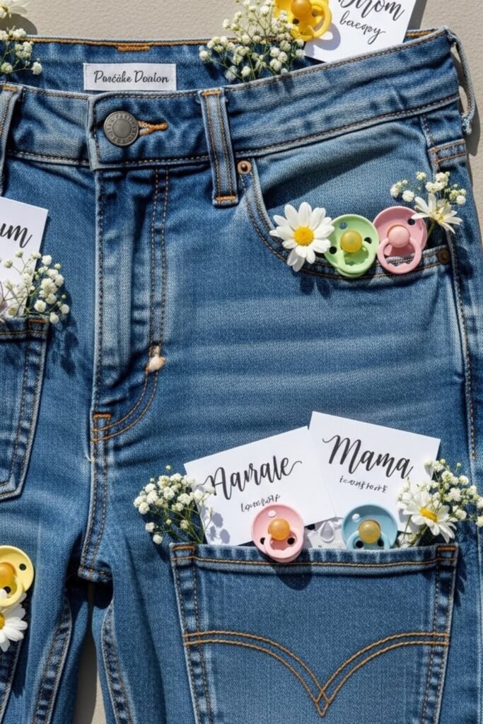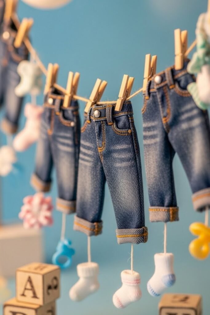 Set up a denim-covered board where guests can pin notes, wishes, or advice for the baby. Use mini clothespins or push pins styled like jean buttons.