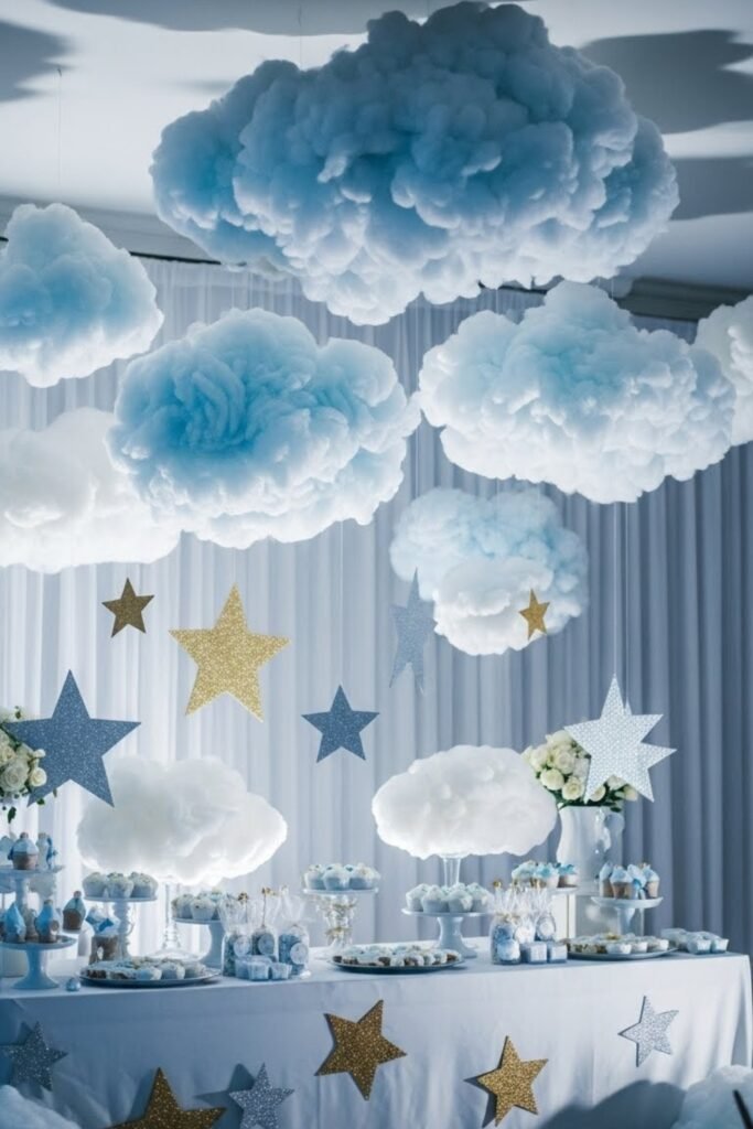 This idea feels light and dreamy, making it perfect for a cheerful baby boy shower with a playful yet gentle atmosphere.
