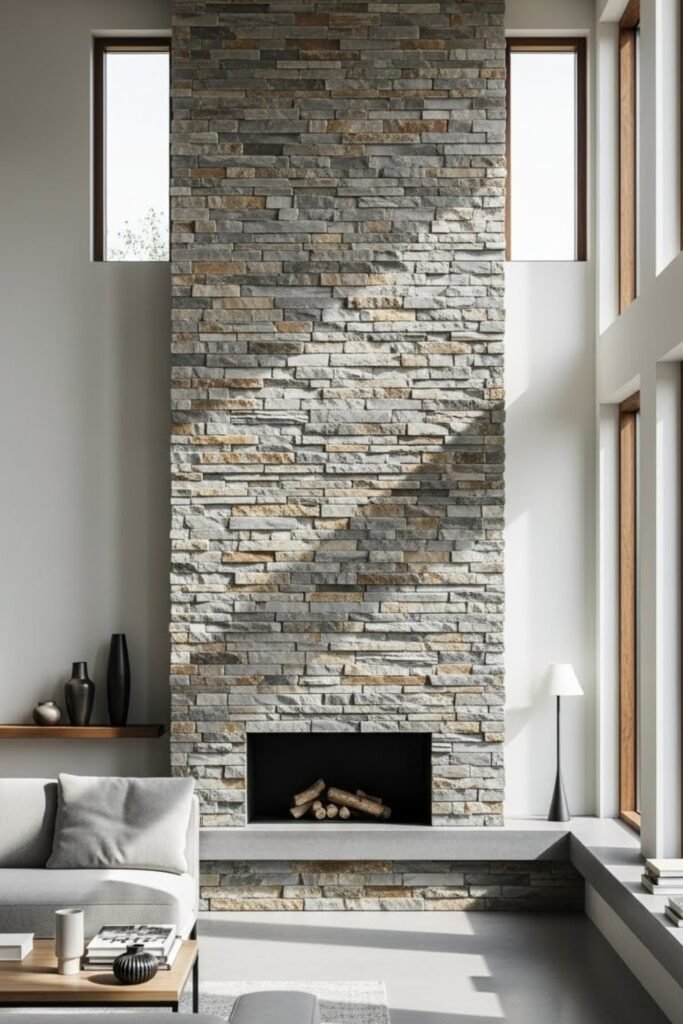 Highlight one exterior or interior wall with natural stone to add texture and character. A stone feature wall creates a strong visual focal point without making the bungalow feel heavy.