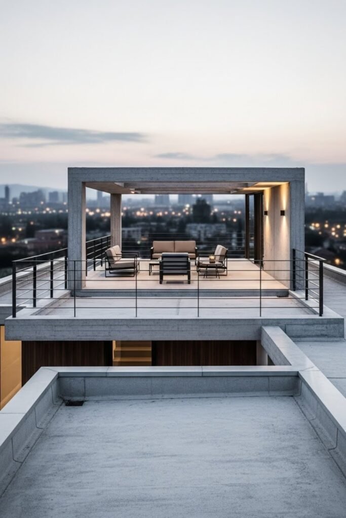 Design a flat roof that can be used as an open terrace. This extra space works well for evening seating, light gardening, or solar panels.