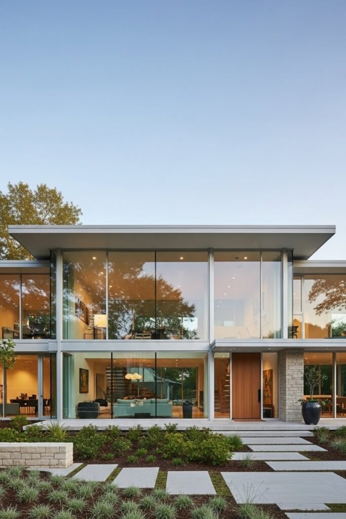 Pair the glass with curtains or screens for privacy while keeping the facade modern and welcoming.