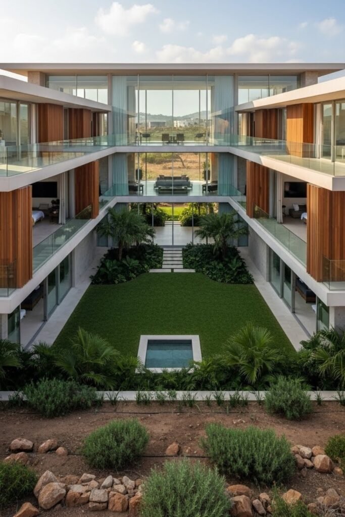 This layout allows more rooms to face greenery and improves natural light and ventilation. It also offers better privacy from the street while making outdoor areas feel like part of the home.