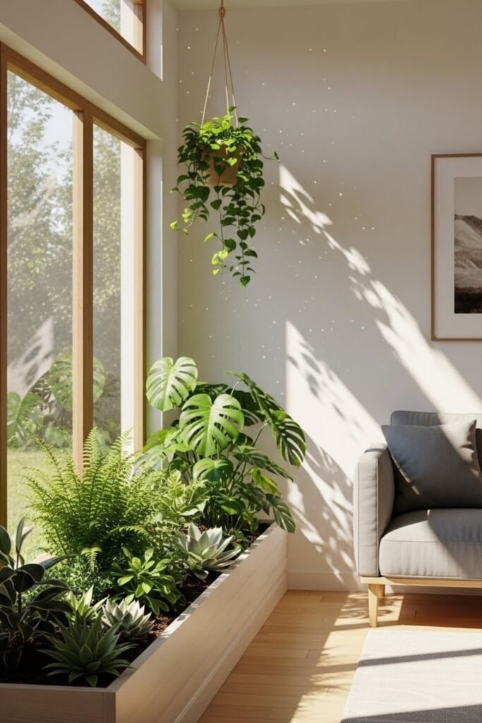 Indoor greenery works well near living spaces or corridors and becomes a natural focal point without taking up much space.