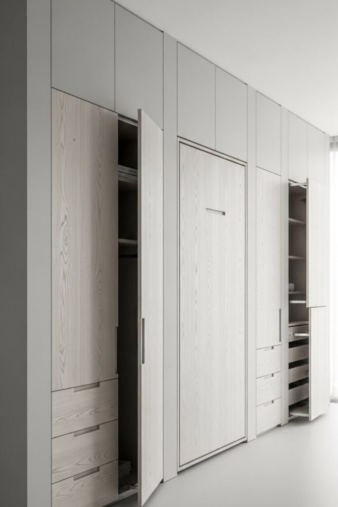 Hidden storage helps maximize usable space without affecting the layout. This approach is ideal for compact bungalows where smart organization makes the home feel larger and more comfortable