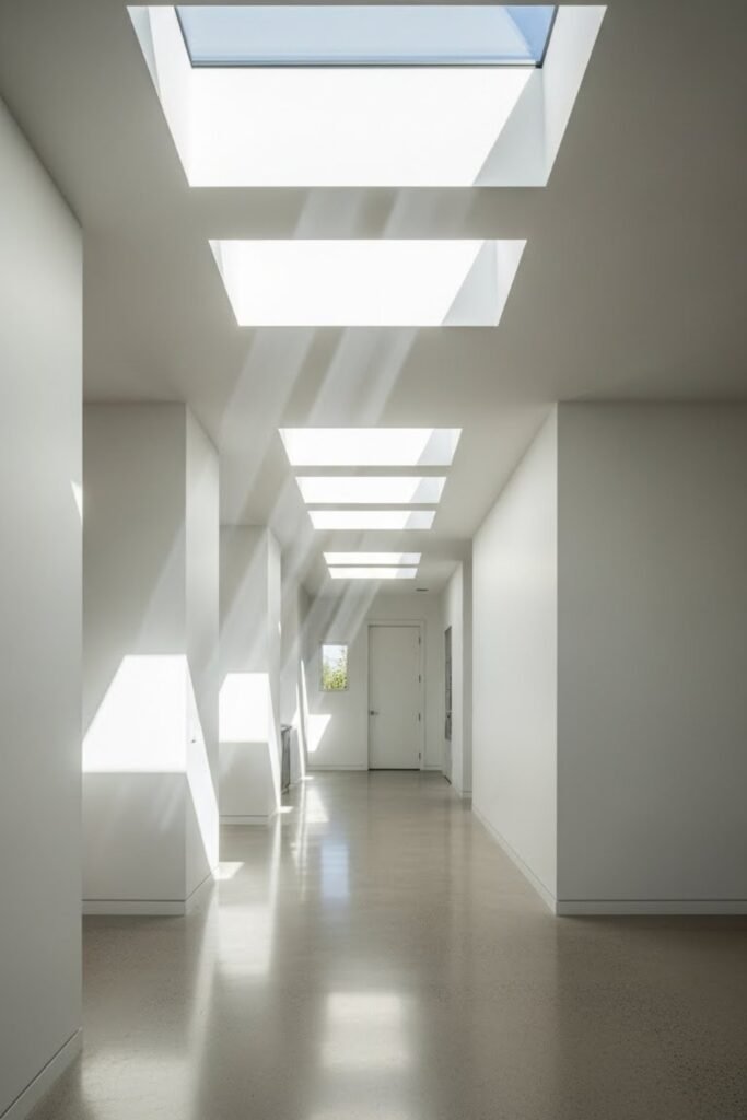 Use skylights in hallways, bathrooms, or kitchens to bring in natural light where windows are limited.