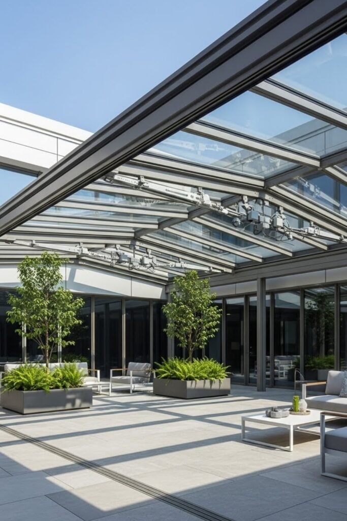 This flexibility makes the courtyard usable year-round. It’s ideal for regions with changing seasons where permanent open courtyards aren’t always practical.