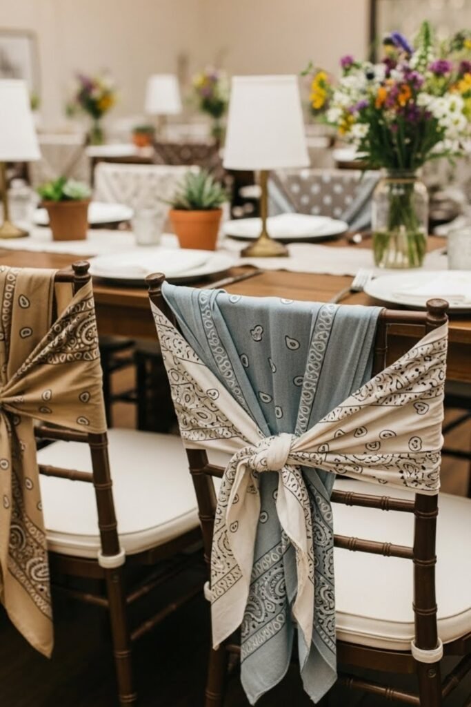 Tie bandanas around the backs of chairs to instantly transform seating. Stick to one or two colors so the space feels coordinated.
