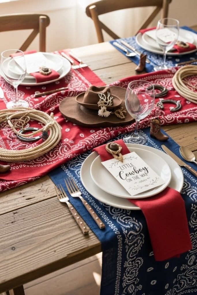 Lay classic bandanas across tables instead of traditional runners to add an instant western feel. Choose one color or mix a few neutral shades for variety.