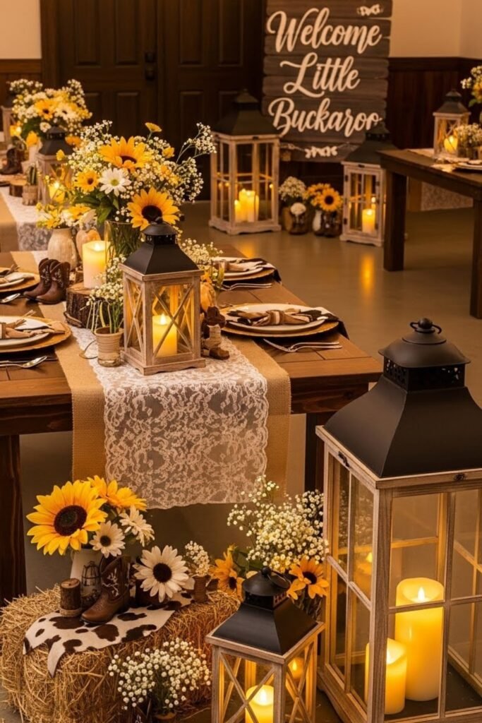Place small lanterns around the party space to add a warm ranch-style touch. They work well on the dessert table, gift area, or near the entrance.