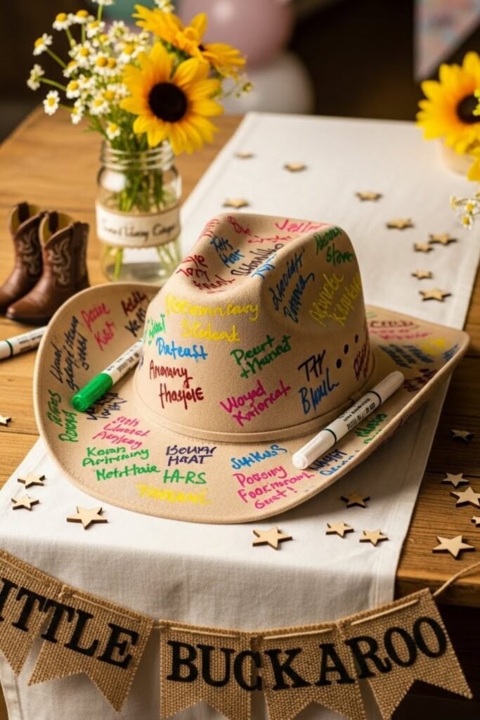 Use a plain cowboy hat as an alternative guest book and let guests sign it with fabric markers.
