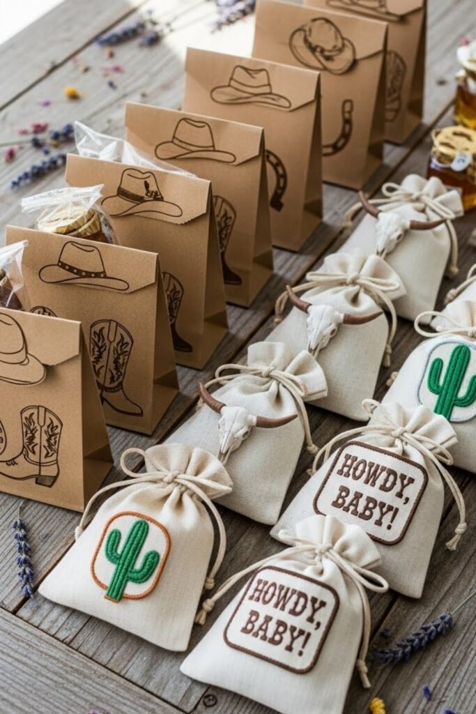 Send guests home with ranch-style favor bags made from kraft paper or fabric sacks. Fill them with small treats or themed items.