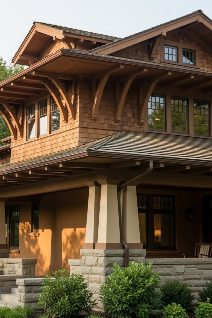This idea strengthens the handcrafted feel of a Craftsman home while visually breaking up large exterior walls in a balanced way.