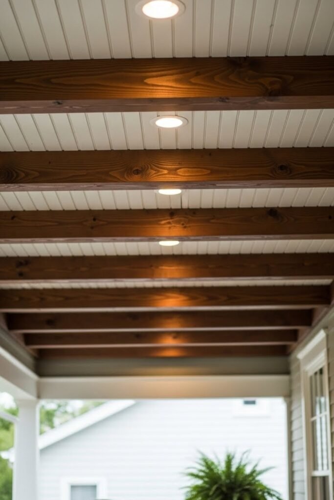 This detail works best on covered porches, turning the ceiling into a subtle design feature rather than a plain surface.
