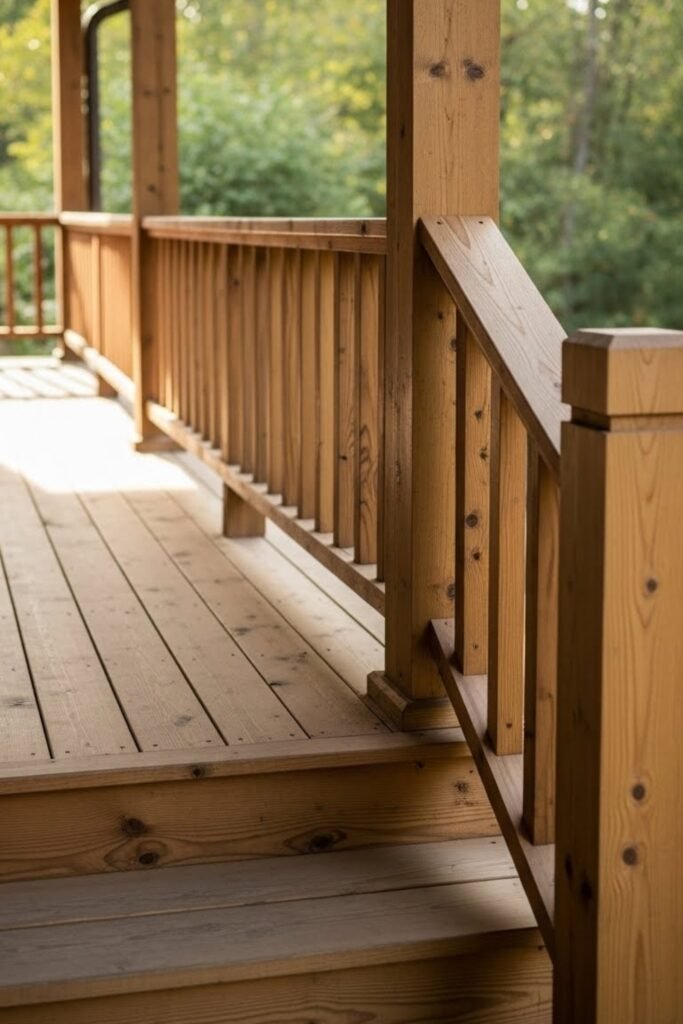 Craftsman-style porch railings add detail without overpowering the facade. Using simple wood balusters or squared designs keeps the look consistent with the home’s architecture.
