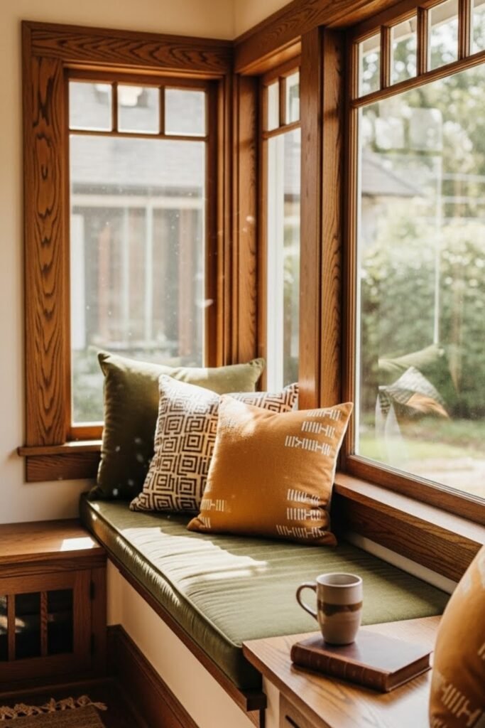 Built-in window seats bring classic Craftsman charm to interior spaces. Placed near front windows or living areas, they add function without clutter.