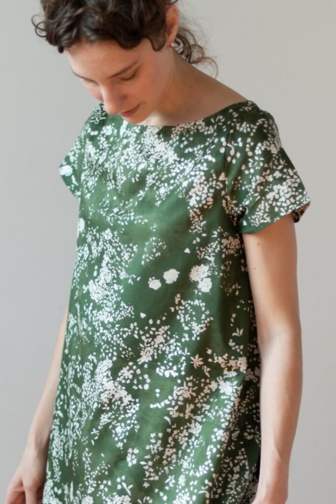 For a fit that lets air flow in and out, wear an oversized shirt and cut the neckline broader. The botanical print is cute and suitable for informal brunches or art fairs.