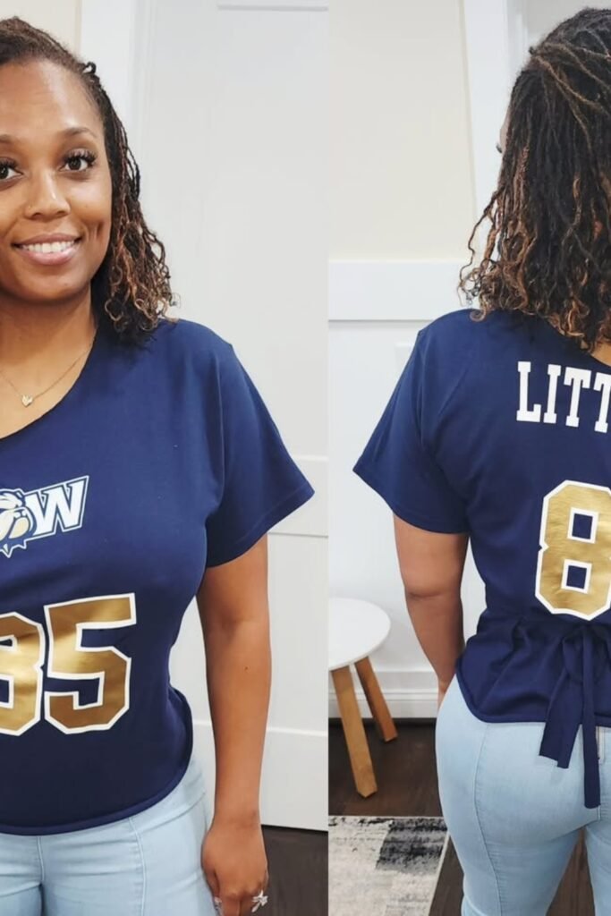 It’s a great DIY for game days or laid-back weekends when you want to look sporty but still feminine.