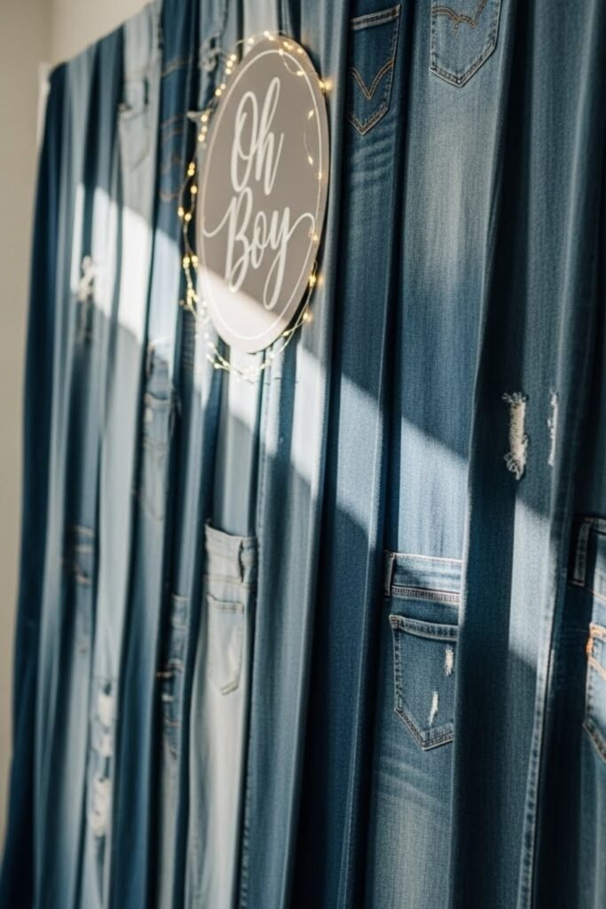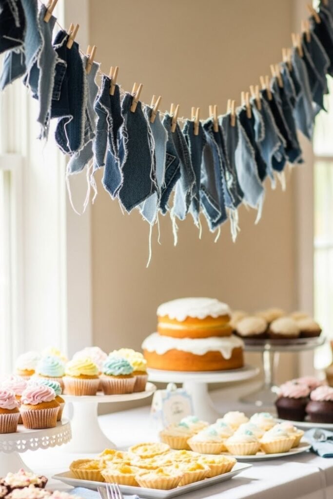 This idea adds visual interest without overwhelming the space and feels handmade, which suits a relaxed denim baby shower theme perfectly.