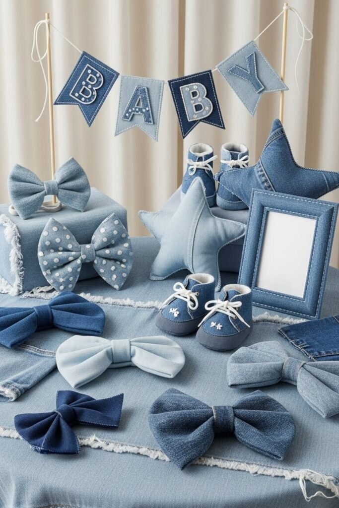 The best part is that denim decor feels timeless, affordable, and flexible, making it easy to create a cohesive baby shower setup without stressing over every detail.