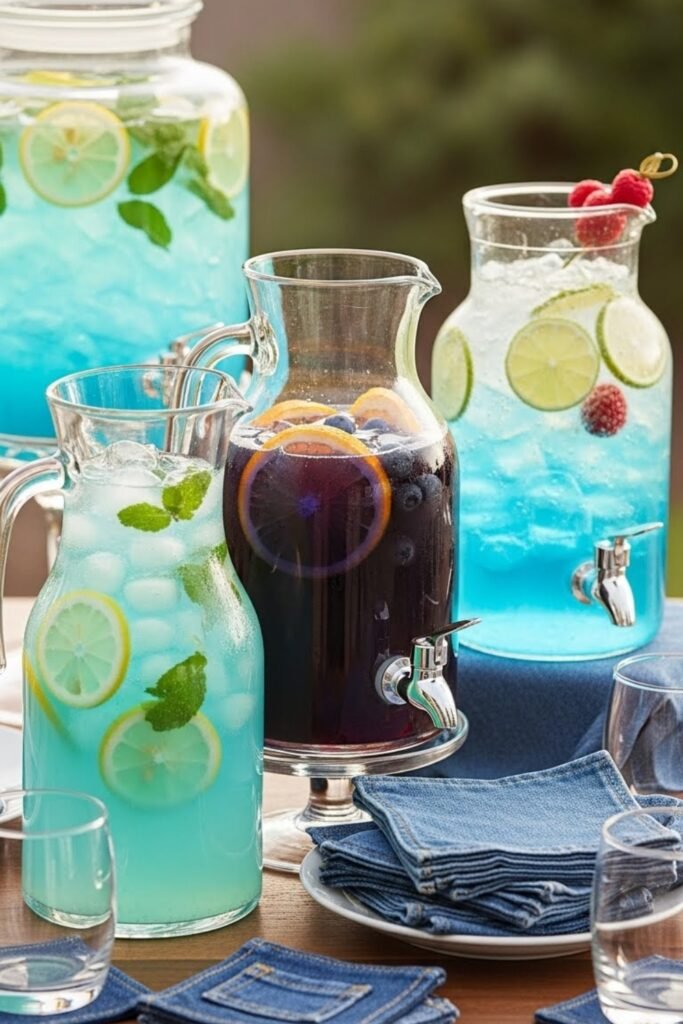 Serve drinks in layered blue tones to mirror denim washes. Lemonade, mocktails, or infused water work well for this. Use clear glassware so the colors show naturally.