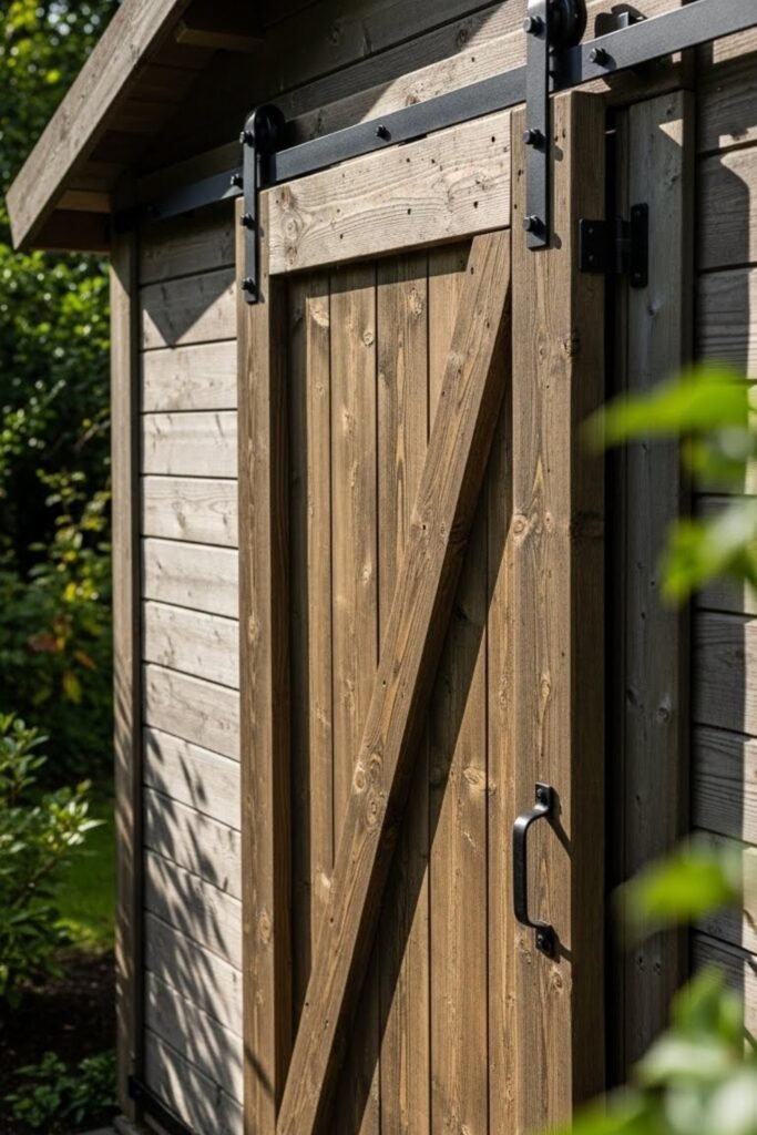 A shed barn door needs durability more than decoration. Use thicker boards and exterior-grade screws to handle weather exposure. Seal everything with outdoor paint or stain to prevent moisture damage.