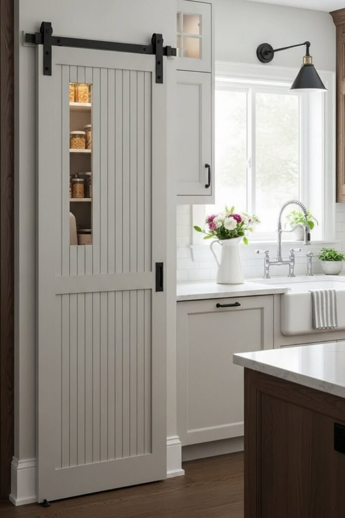 A pantry slider works best when space feels tight and a swinging door gets in the way. Use lightweight plywood or thin boards to keep the track smooth.
