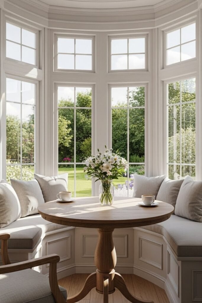 Turn a bay window area into a charming breakfast nook by adding a built-in bench along the window curve.