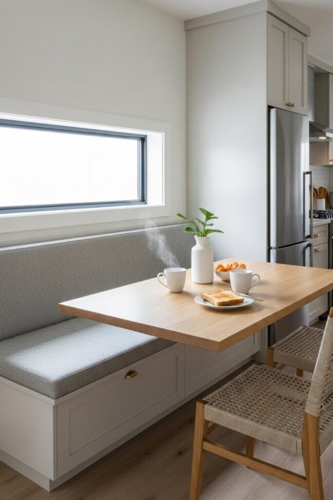 Design a breakfast nook specifically for tight kitchens or apartments. Use a narrow bench and a compact table to keep walkways clear.