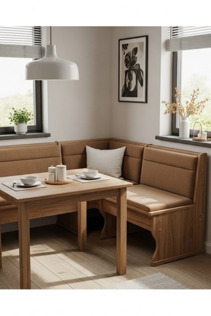 Create an L-shaped bench to define a clear breakfast nook area in your kitchen. This shape fits neatly into corners and provides generous seating without crowding the space.